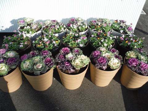 今回は、冬の時期にも元気に花を咲かせる丈夫で可愛らしい「葉牡丹」と「ビオラ」を選びました。