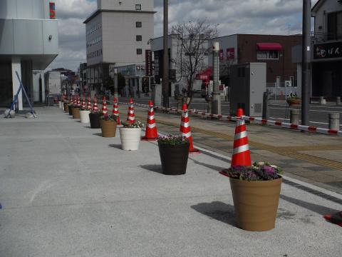 たいまつ通りのtette前に15鉢の色鮮やかなお花たちがオープンに向けて彩りを添えておりますので、
