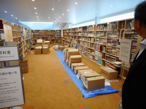 今年7月に図書館を閉館し、準備作業を進めていますが、閉館する前から蔵書を選り分けラベル添付などの梱包準備を始め、閉館後から本格的に箱詰め作業を行ってきました。その数は約20万冊あり、10000箱にものぼります。現在は、運搬作業を行い、梱包・配架作業を行っています。