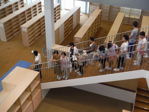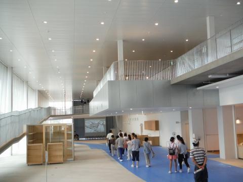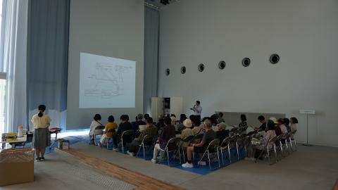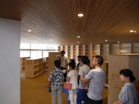 8月22日から27日まで、市民の方たちを対象とした内覧会を実施しました。初日の22日には、約180名のお申込みがあり、初めにたいまつホールで佐久間市民交流センター整備室長から施設の概要について説明があり、その後1グループ約30名ずつに分かれ、交流センター整備室職員の案内により1階から5階までそれぞれ見学していただきました。