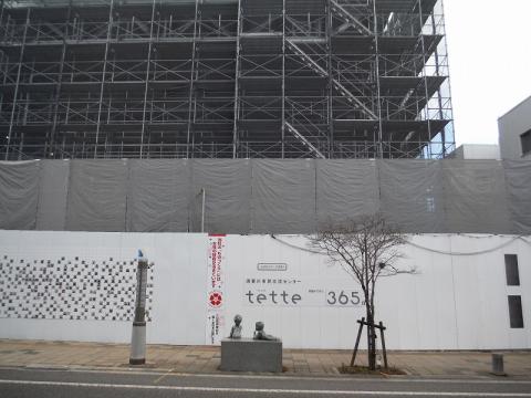 市民交流センターの周りの仮囲いを外す作業が行われました。囲いがある時と比べるとこのようになり、たいまつ通りからも状況が見やすくなりました。