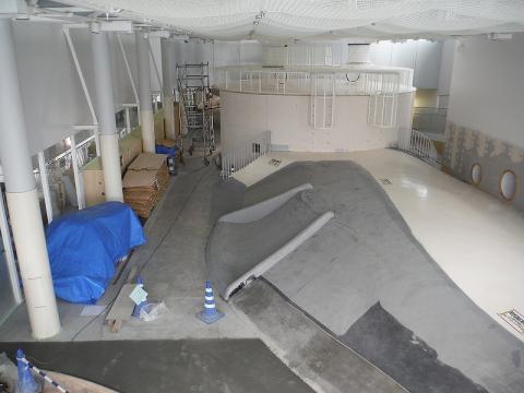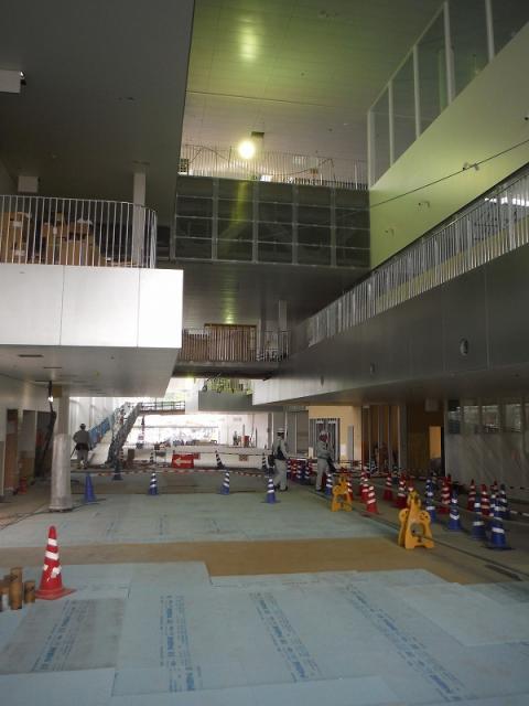 本体工事は、7月末の竣工に向け、内装工事などが急ピッチで進められており、関係者による現場視察もこれが最後となります。一般の市民の方々を対象とした内覧会は、安全性を考慮し、建物竣工後の8月22日から8月27日の6日間で行う予定です。詳しくは7月号広報に掲載しますので、ご覧ください。