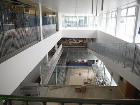 こちらは組まれていた足場が外れ、吹き抜け部分が現れました。4階から5階へは階段でつながっています。