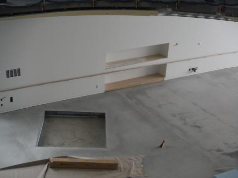 この1階の床は、敷地の東西で約2.5mの高低差があり、前回の視察では、鉄筋を張り巡らせてゆるやかな床の傾斜を作るというとても難しい工事が行われていましたが、このようなすばらしい形にできてきました。