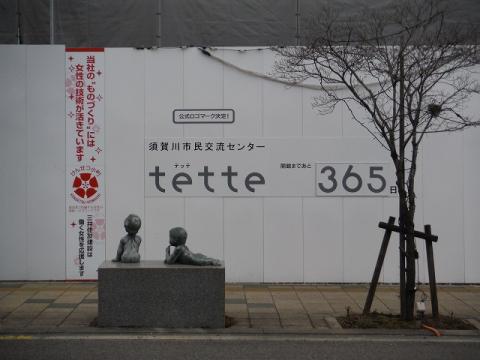 須賀川市民交流センター「tette」開館まで、いよいよあと1年となりました。ちょうど1年前となった1月11日、カウントダウンパネルを設置しました。