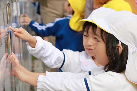 園児たちは、自分の顔写真を笑顔で貼りつけていました。
