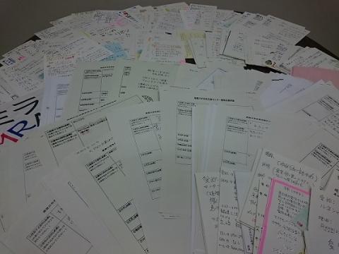 全国から1317件もの応募をいただきました。写真はおハガキやFAXなどによってお寄せいただいたものの一部です。