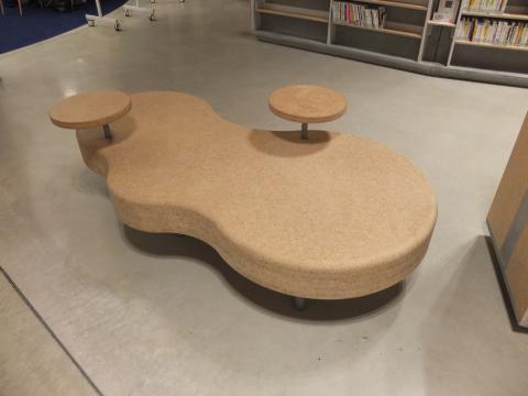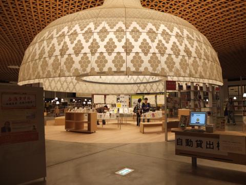 グローブの下には展示や読書スペースがあります。本を読む人、展示を見る人など