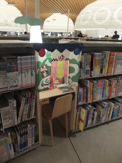 子ども図書の一角には本を紹介する特徴的なブースがあります。交流センターにも