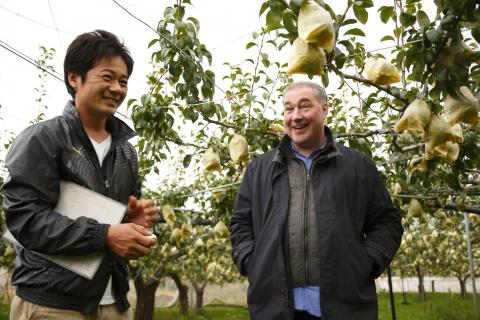 渡辺果樹園の渡辺喜則さん(新高梨)