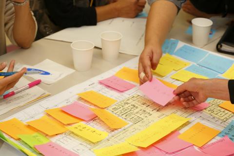 後半は4グループに分かれて、市民交流センターで「食を題材にした企画」を考えました。