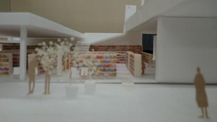 須賀川駅に併設されている市コミュニティプラザ(待合室)に(仮称)市民交流センターの模型を設置しました。