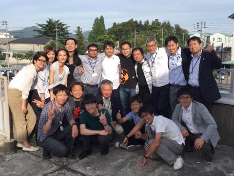 最後は、本ワークショップの主催者でもあり、熱く心強い須賀川市の職員メンバーと、建築家の畝森さん、ゲストの方々とでパチリ!
